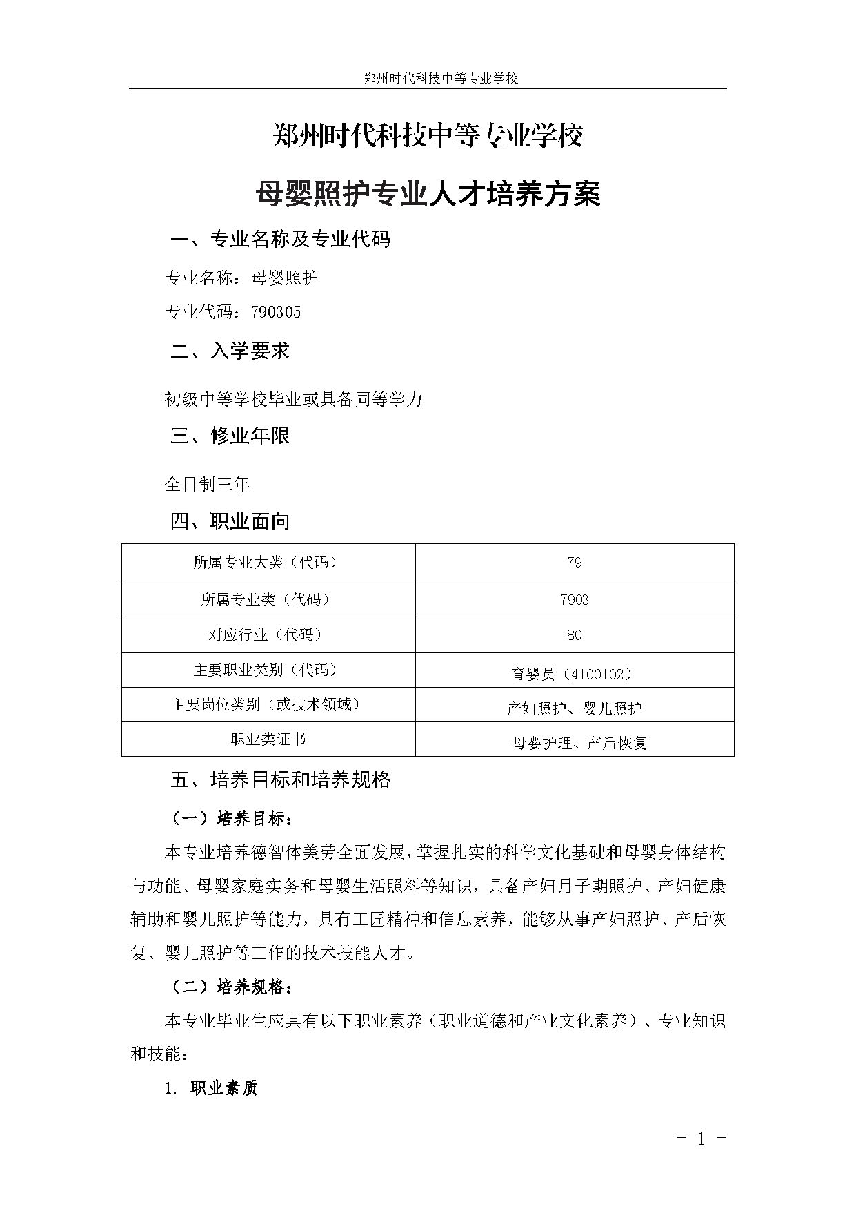 母婴照护专业人才培养方案